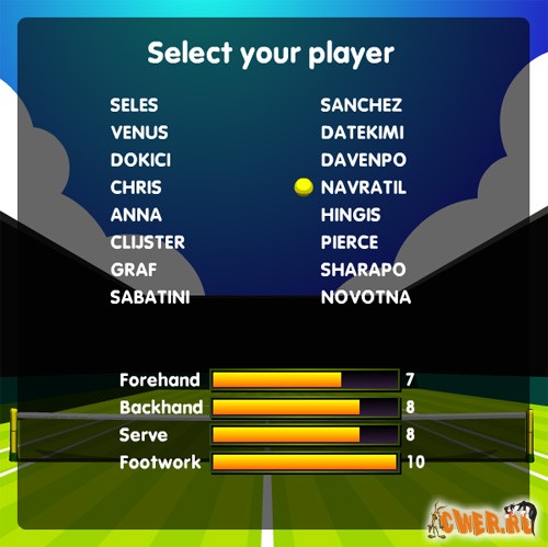 Большой теннис. Старенькая, но по-прежнему не теряющая своей актуальности флешка. Приличный выбор игроков, режим тренировки или чемпионата.