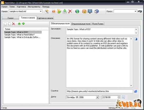 Если вы хотите создавать профессиональные RSS ленты, но у вас катастрофически нет времени на изучение технологии RSS, тогда Feed Editor - решение для вас! Feed Editor генерирует ленты, используя версию 2.0 стандарта RSS, и является лучшим решением для WYSIWYG редактирования RSS каналов и подкастов, не требуя при этом знания основ XML.