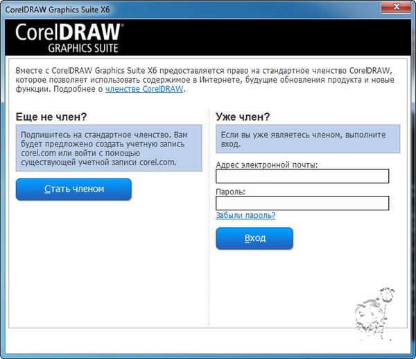 Теперь корел предлагает не регистрацию, а стать членом.