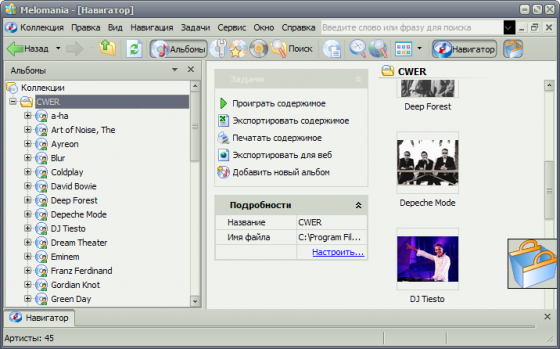 Melomania - это необычайно удобная программа для Windows, предназначенная для организации и каталогизации любых музыкальных коллекций, от виниловых дисков до MP3, и предоставляющая Вам широкий ряд возможностей для работы с музыкальной базой данных, включая автоматическое добавление цифровых треков, закачку информации из Интернет, учет отданных дисков и многое другое.