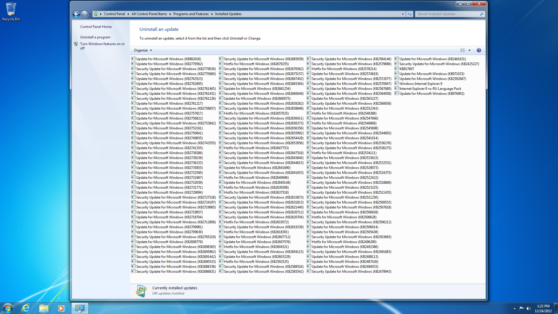 - Интегрированы официальные обновления от Microsoft (кроме касающихся Windows Defeneder и .Net Framework) по 25.12.2012. Несколько обновлений не подлежат интеграции в дистрибутив.