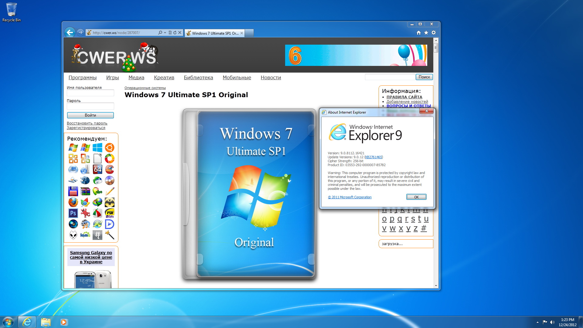 • Интегрирован Internet Explorer 9.0.12