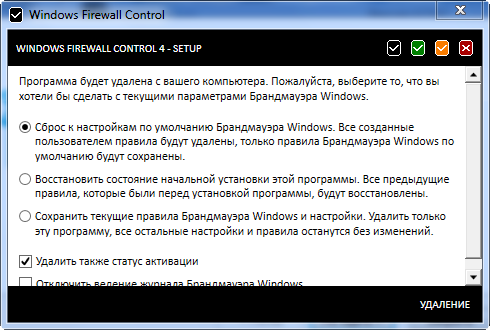 1) Даже если программа удалена с компа, файрвол остается в том состоянии, которое было установлено в WFC!