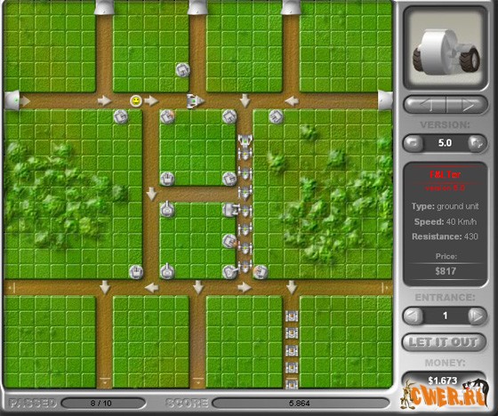 И снова башенки на флеше, но только с приставкой "анти". Ваша задача не охранять территорию, а наоборот прорываться через неё. В игре десять уровней, разнообразная техника и различные бонусы. С помощью стрелок можно менять направление движения Вашей армии. Есть возможность повышения уровня защиты каждой единицы техники (1-5).