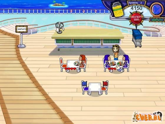 Отличная игра о приключениях известной нашим игрокам Фло и ее подруги. На этот раз она собралась в круиз на огромном лайнере. Но при посадке она случайно уронила чемодан в море. У нее не осталось ни вещей, ни денег. А тут еще капитан лайнера просит ее помочь с обслуживанием ресторана. Правда, он обещает хорошо заплатить, а так же приобрести для Фло новый гардероб. И юная рестораторша решает взяться за этот нелегкий труд. Тем более, другого выхода нет…