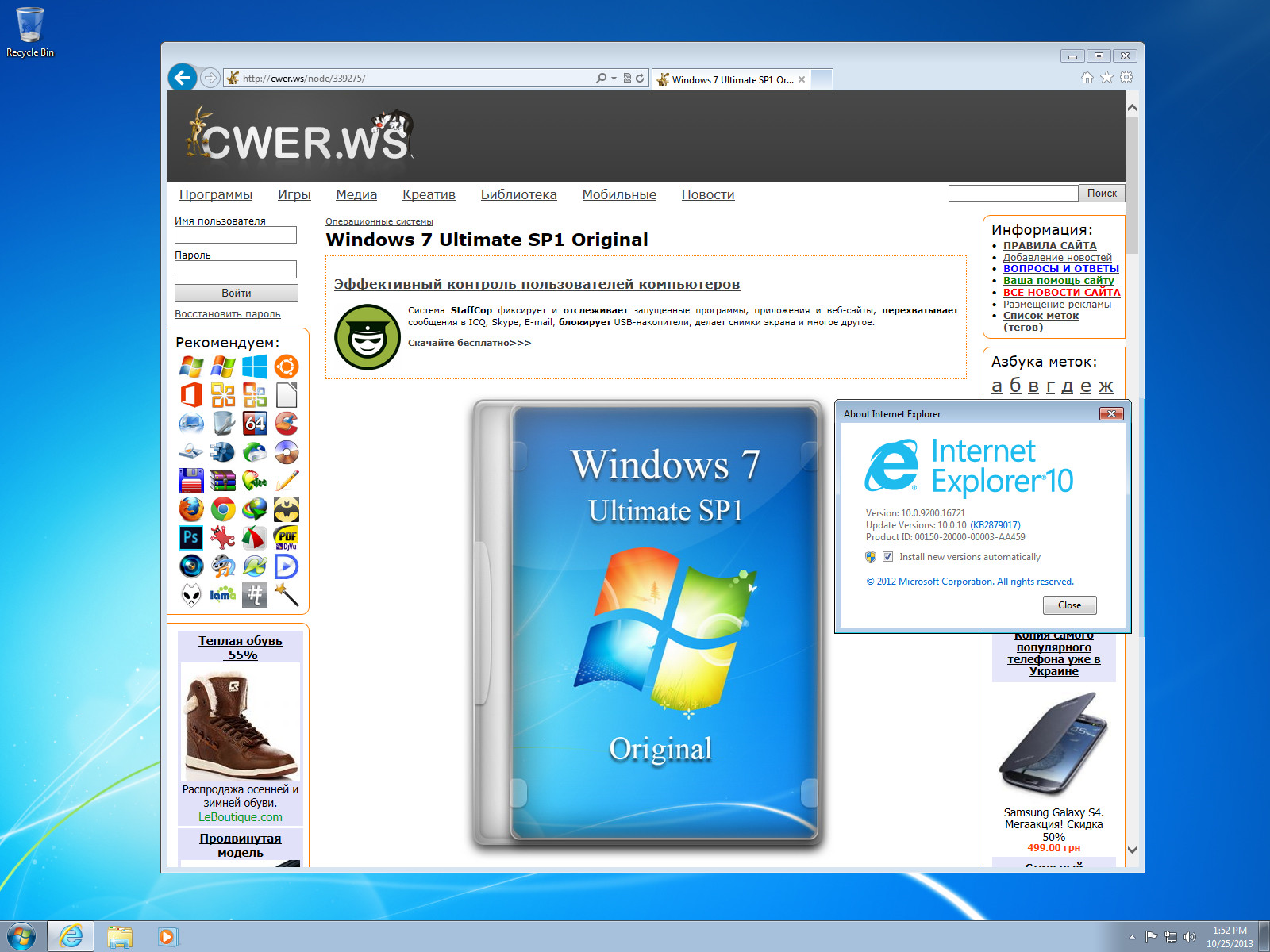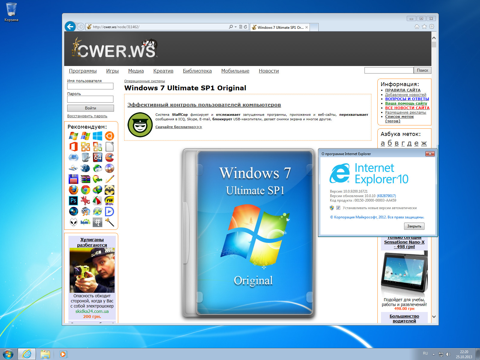 - Интегрирован Internet Explorer 10.0.10