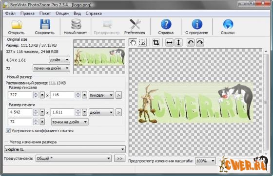 PhotoZoom Pro позволяет увеличивать размер изображения без заметной (или малозаметной) на глаз потери качества. Основные возможности: 10 алгоритмов интерполяции, включая собственную оригинальную технологию S-Spline; поддержка 48/64-битных изображений; пакетная обработка файлов.