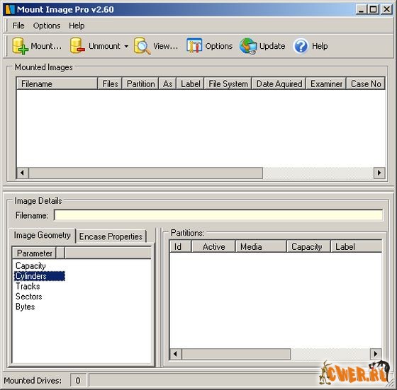 Mount Image Pro – утилита, которая может монтировать файл-образы (как физических накопителей, так и логических разделов) как логические диски в ОС Windows. Поддерживаются следующие типы образов (файл-образов): образы, созданные программой EnCase® - все версии, включая сжатые и защищённые паролём образы; образы, созданные программой SMART®; образы в формате Raw; образы ISO.