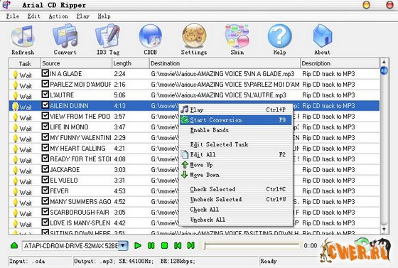 Обновилась программа Arial CD Ripper - удобный инструмент для снятия треков с компакт-дисков и записи их на жесткий диск в виде MP3, WAV, OGG, FLAC, APE файлов, также программа позволяет "перегонять" музыку из формата в формат. Поддерживается работа с CDDB.
