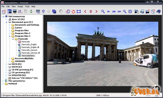 Panorado - это простой и удобный просмотрщик изображений, который был специально разработан для просмотра больших и панорамных изображений. Комфортный просмотр при помощи простых перемещений мыши или нажатия на ее 5 кнопок (у кого они есть). Panorado автоматически распознает 360°-ную склейку и отобразит ее без шва - в зацикленном просмотре. Имеется поддержка основных графических форматов: JPEG, GIF, BMP, WMF, EMF, ICO, CUR, TGA, PCX, PNG, TIFF, JPEG 2000, PNM, и RAS. В версии 3 добавилась поддержка формата QuickTime. Программа облегчает импорт, просмотр, упорядочение, печать, ретуширование, обмен и архивацию разного рода электронных изображений.