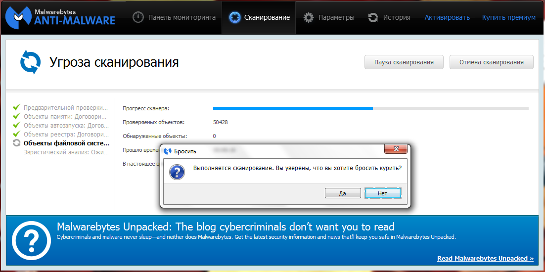 Malwarebytes' Anti-Malware - новая версия программы от создателей RogueRemover Pro, AboutBuster и других популярных утилит, способная находить и удалять разнообразные вредоносные программы. Программа использует эвристический метод сканирования, способный в реальном времени контролировать безопасность системы в целом. Также имеется возможность полного сканирования всех дисков. Помимо этого, в состав данной программы входят дополнительные утилиты, предназначенные для удаления вредоносных программ вручную. Приложение обладает интуитивно понятным пользовательским интерфейсом с многоязычной поддержкой, включая поддержку русского языка.