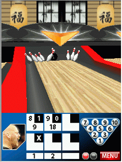 Игра для мобильных телефонов. 3D боулинг. Наслаждайтесь прекрасной трехмерной графикой в этой новой игре. Повеселитесь как следует и завоюйте титул лучшего игрока в боулинг. Выберите понравившийся вам шар для боулинга и проверьте свои навыки против всемирно известных профессионалов. Где вам больше всего нравится играть? В Лас-Вегасе или в Токио? Выбирайте и выигрывайте! Размеры экранов: 176х208, 176х220, 240х320.