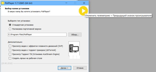 Мо способ - так же вполне себе способ )) А "справа от "Выбор папки установки" нажать на жёлтую (новую) иконку ("Отключить телеметрию + Предыдущий значок проигрывателя") тоже прикольно.