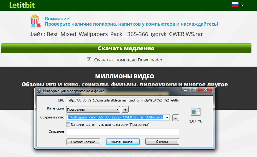 Видимо просто надо галочку снять и проблема решена при скачивании с Летитбит.