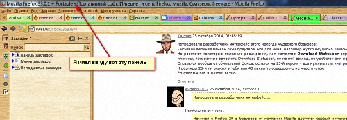 (Хотя возможно, что в новых версиях и вернут ее на место) Если эту главную панель можно отображать в новой версии - я готов испробовать, но без нее - жуткое неудобство. Вообще мне, при всем уважении к файрфоксу, жутко не нравится, когда с выходом новой версии старые, удобные плагины перестают работать, а их разрабы не всегда сидят и караулят - когда же выйдет новая версия фокса, чтобы быстрее обновить свой плагин )) В результате многие полезные плагины и шкурки оказываются незаслуженно в помойке. А собственно плагинами фокс и удобен.