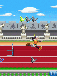 Игра для мобильных телефонов. Помоги Гуфи, Микки, Минни и Дональду победить и получить золотые медали в спортивных соревнованиях мирового класса. Неуклюжему Гуфи предстоит преодолеть 400- метровую трассу с препятствиями и не упасть. Минни покажет свое умение держать равновесие на бревне и восхитительную осанку. Микки продемонстрирует свое мастерство пловца в соревнованиях по плаванию, а Дональд покажет высший класс в прыжках в воду! Удобное управление делает эту игру легкой и увлекательной, но, чтобы побить мировые рекорды, вам придется попотеть. Размеры экранов: 128х128, 128х160, 176х208, 176х220, 240х320.
