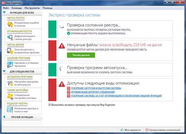 - Чистка реестра — Reg Organizer самостоятельно найдет и устранит все ненужные и ошибочные записи в системном реестре Windows, которые могут влиять на стабильность работы.