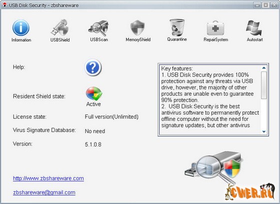 USB Disk Security - инновационное программное обеспечение, которое обеспечивает вам 100% защиту от вредоносных программ и вирусов, распространяемых через сменные носители(USB флешки, карты памяти, внешние жесткие диски и другие носители, подключаемые через USB порт). Программа проста в обращении, не требовательна к системным ресурсам и относится к категории "поставил и забыл". Программа полностью совместима с современными антивирусами, что позволяет Вам обеспечить наибольшую защиту при использовании их вместе.