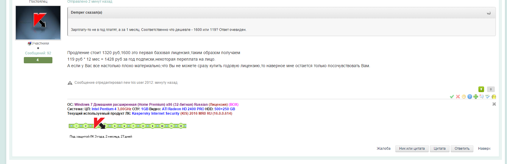 Как говорится, мое терпение лопнуло - когда уже официальный фан-клуб советует покупать второй раз лицензию и это не наши проблемы, а еще и оскорблять, вместо того, чтобы просто молча передать вопрос Е.К (ведь когда сотрудники разводят клоунаду- это не есть хорошо, и что неплохо было бы таким сотрудникам кувалдой по голове дать), то уже становится ясно, что явно не все дома у Евгения Касперского и его пользователей. Я не выдержал, закрыл вкладку браузера, дописал эту статью и ушел пить кофе. А вот теперь думайте сами- решайте сами. Стоит ли иметь дело с антивирусной лабораторией, какой бы не бы не была агрессивная реклама, которая так обращается со своими клиентами?
