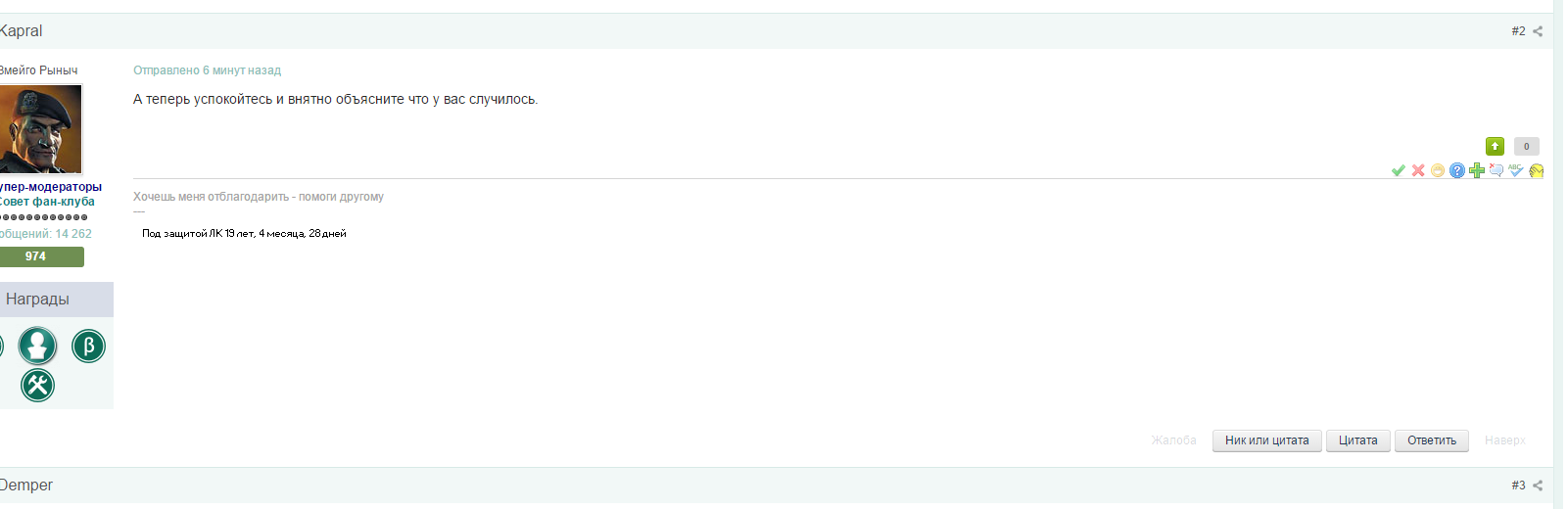Пруф, что тред был:Получаю ответ вместо самого Е.К от какого-то неизвестного мочератора, хотя по их же правилам отвечать до самого Е.К нельзя: