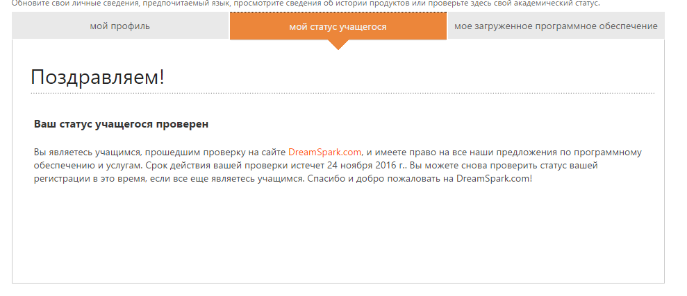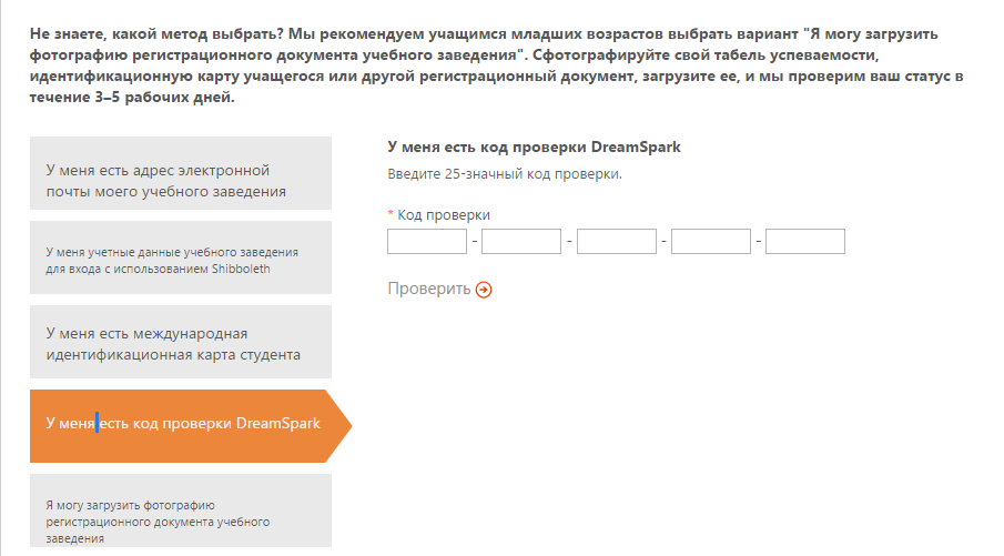 Круг 2. Регистрация Dreamspark.