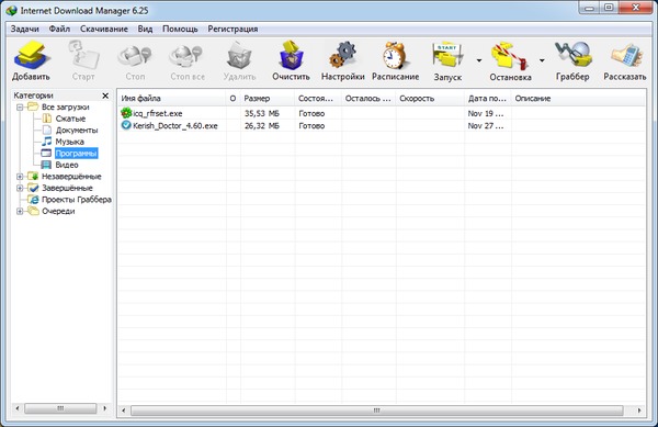 Internet Download Manager - программа для организации загрузок файлов из интернета. Предусмотрены различные методы ускорения загрузки, динамическая сегментация файлов и одновременное скачивание нескольких частей, использование свободных открытых подключений без переподключения и многое другое. Поддержка файрволлов, прокси и зеркал, FTP and HTTP protocols, редиректов, куки, очередей закачки, авторизации пользователя. Интегрируется во все популярные браузеры и автоматически перехватывает закачки.