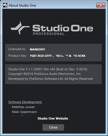 Скачать программу PreSonus Studio One Pro 3.1.1.35857 - x64 (94,46 МБ):