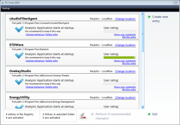 В случае конфигурации служб и автозагрузки программ PC Fresh поможет с рекомендациями. Кроме того вы можете извлечь выгоду из опыта других пользователей, потому что PC Fresh показывает их рекомендации.
