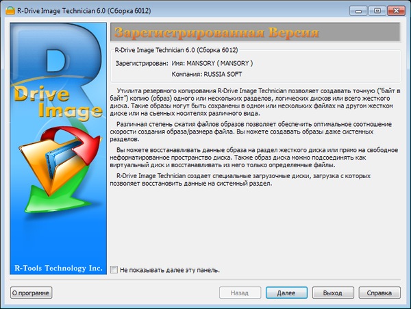 Скачать программу R-Drive Image 6.0 build 6012 (108,06 МБ):