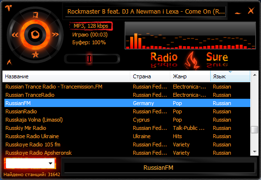 RadioSure — радио плеер, который дает возможность прослушивать множество станций в онлайн режиме. Использование такого радио — полностью бесплатно, при этом у вас есть возможность слушать массу различных радиоволн. Утилита может взаимодействовать с разнообразными форматами такими, как ogg vorbis, vma и многими другими.
