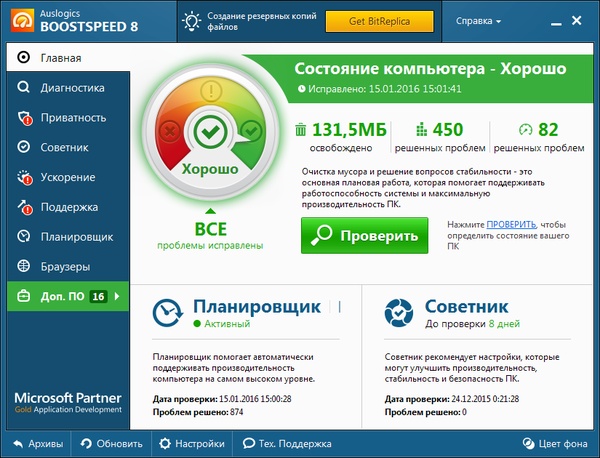 AusLogics BoostSpeed — приложение, которое поможет быстро и качественно произвести настройку ПК на максимальную производительность. Встроенный инструмент System Adviser проверит настройки системы с помощью пятидесяти различных тестов и предложит рекомендации по результатам каждого теста. Программа проверяет систему в режиме реального времени и если находит, что какой-то из параметров можно оптимизировать, то обязательно информирует вас об этом.