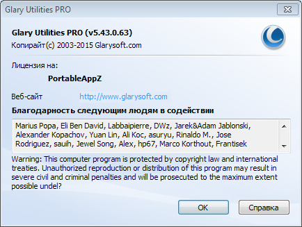 Скачать портативную программу Glary Utilities Pro 5.43.0.63 (15,2 МБ):