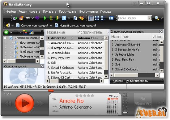 MediaMonkey прекрасно работает с большими коллекциями файлов, имеет расширенные возможности по просмотру и поиску композиций и альбомов, автоматически идентифицирует треки, осуществляет синхронизацию тэгов, обладает простым и понятным интерфейсом, позволит вам искать слова к песням, составлять плейлисты, работает с виртуальными дисками, имеет множество фильтров и многое другое. В новую версию программы включено более 200 новых функций и улучшений. Значительно повышено быстродействие при работе с коллекциями, включающими в себя более 100,000 музыкальных треков.