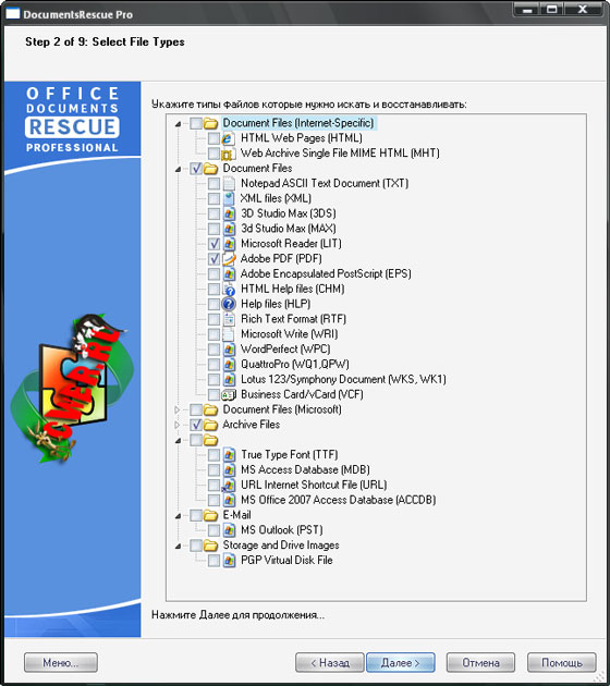 DocumentsRescue Pro - это эффективный инструмент для восстановления документов Microsoft Word, Excel, PowerPoint, Project, Publisher, Visio и других популярных форматов. Программа восстанавливает удаленные файлы, а также копирует нечитаемые файлы с жестких дисков, CD/DVD дисков, КПК, а также всех известных типов флэш-карт (таких как CompactFlash (type I/II), IBM Microdrives, SmartMedia, MultiMedia (MMCs), Secure Digital (SD), Memory Sticks и другие). Способна восстановить документы потерянные в результате: случайного сбоя компьютера, удаления файлов (в том числе когда "Корзина" была очищена), форматирования носителя, и даже в том случае если документ не был сохранен! Программа удобна и проста в использовании даже для новичка, при этом позволяет использовать все возможности восстановления, которые оценят профессиональные пользователи.
