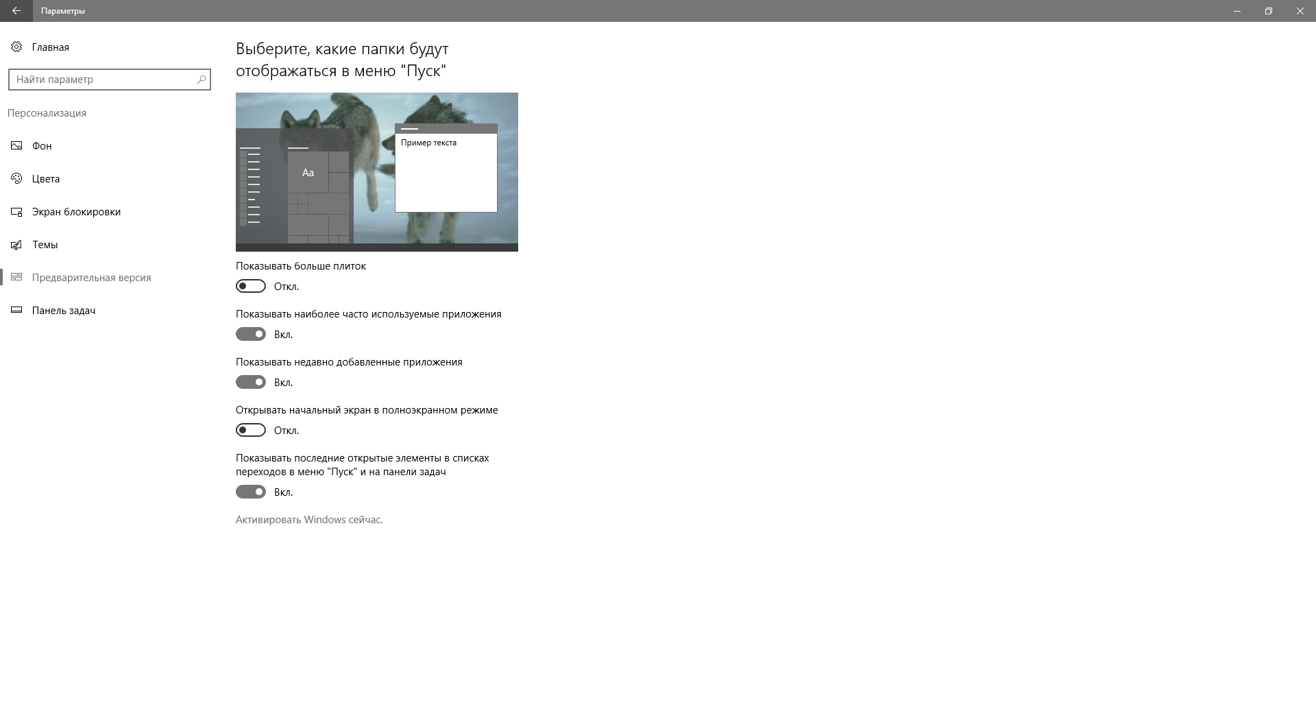 Слово START по русски теперь - "Предварительная версия"