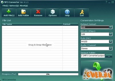 - Поддерживает возможность Drug'n'Drop. Просто задайте папку, куда будут сохраняться MP3 файлы и перетащите медиа-файлы, которые хотите конвертировать в Drop Zone.
