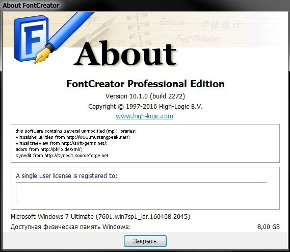 Скачать портативную программу High-Logic FontCreator Professional 10.1.0.2272 (51,14 МБ):