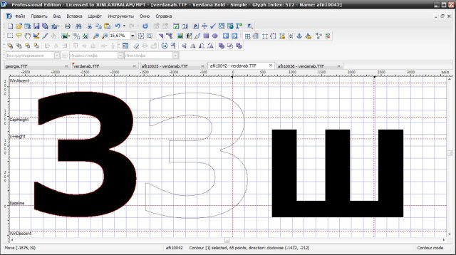 - Преобразование отдельных глифов или всего шрифта (например, сделать полужирную версию)