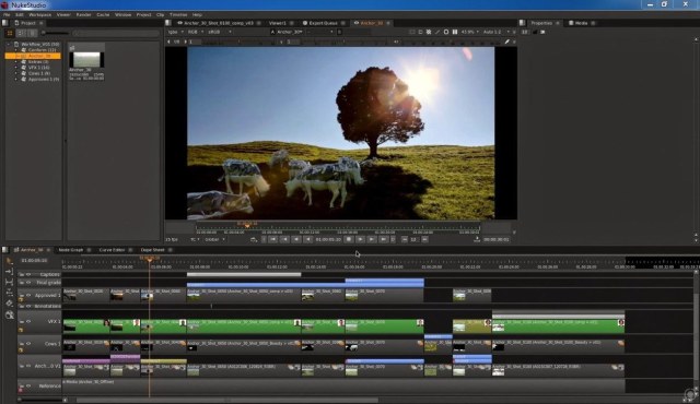- Главным отличием Nuke Studio от других приложений для композитинга (таких, как Motion или After Effects) это возможность работать не только с видеослоями и режимом наложения эффектов, но и проводить базовый монтаж, цветокоррекцию, добавление эффектов и финальный мастеринг видеоролика./
