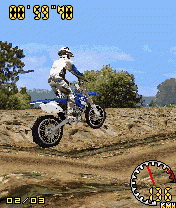 Игра для мобильных телефонов. Потрясающие реалистичные трехмерные гонки на спортивных кроссовых мотоциклах. В игре вы сможете принять участие в чемпионате по супер мотокроссу. Размеры экранов: 176х208, 240х320.