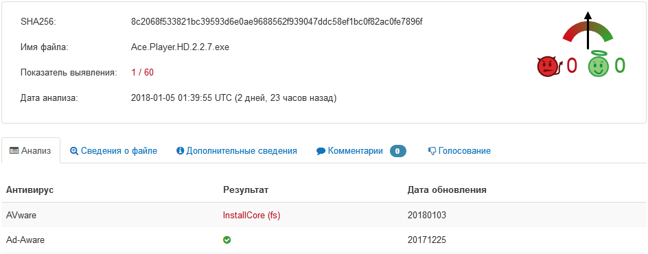 К чему все: в моем архиве вырезан навязанный плеер VLC; движок этой версии передавал рекламу в элемент ace_web.exe, которого тоже нет (в новых версиях реклама при отсутствии этого элемента все равно открывается в стандартном браузере).