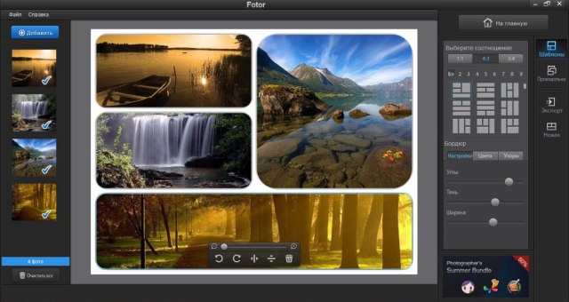 - Позволяет создавать полностью настраиваемые и уникальные коллажи из серии фотографий.