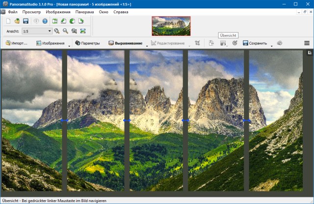 PanoramaStudio - программа для создания панорамных снимков, которая автоматически совмещает изображения между собой, обеспечивая при этом плавный и незаметный переход от одного к другому.