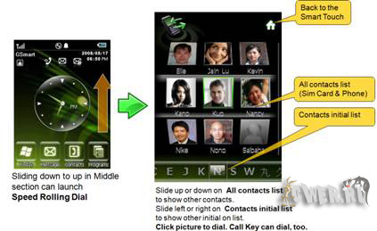 Отличительной особенностью новинок является обновленный фирменный интерфейс под названием Smart Touch II, значительно облегчающий работу с операционной системой Windows Mobile. Первое, что бросается в глаза - настраиваемое меню с большим количеством иконок для быстрого доступа к наиболее часто используемым приложениям. Простым перетаскиванием значков пользователь сможет добиться оптимальной настройки основного экрана устройства.
