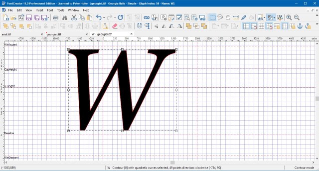 - Преобразование отдельных глифов или всего шрифта (например, сделать полужирную версию)