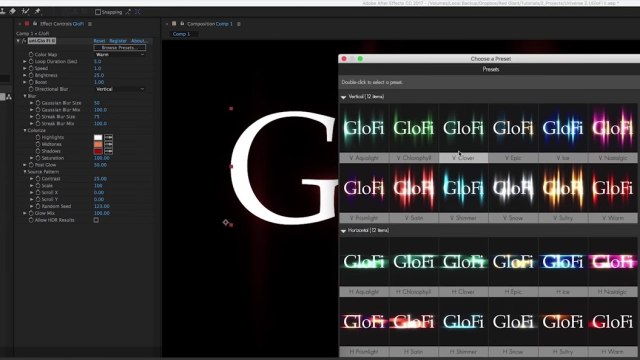 - Glo Fi II – Give text an ethereal moody look by instantly adding silky smooth, self-animating, fractal-based glow effects to titles. A simple UI make it easy to apply evolving, organic glows.
