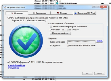 Российский лидер в разработке и производстве лингвистических программ компания "Информатик" выпустила новую версию универсальной системы проверки правописания ОРФО 2016. ОРФО – пожалуй, самая известная и надежная программа проверки орфографии в России. Первая версия ОРФО увидела свет в 1989 году. ОРФО - это многофункциональный набор лингвистических программ, предназначенный для проверки и исправления правописания текстов на русском, украинском, английском, немецком, французском, испанском, итальянском и португальском языках. Никто не застрахован от ошибок при наборе текста. Чаще всего это обычные опечатки, которые трудно заметить при вычитке текста. Повторяющиеся слова, не поставленная точка, отсутствующий пробел, пропущенные запятые и тому подобные промахи могут серьезно испортить документ. Скачав ОРФО на cwer.ru, вы сможете избавиться от подобных ошибок. Компанией Майкрософт лицензирована (для Microsoft Office 97/2000/XP/2003/2007/2010) лишь малая часть лингвистических технологий системы ОРФО. В Microsoft Office 2013/2016 технологии ОРФО не были встроены совсем, что приводит к серьезным ошибкам при проверке орфографии и почти полному отсутствию проверки грамматики русского языка как таковой.