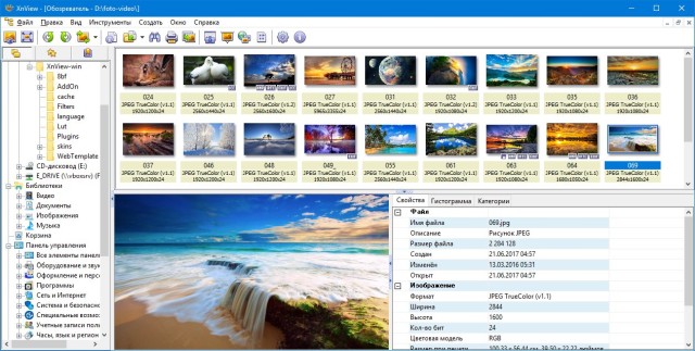 XnView - один из лучших просмотрщиков графики с функцией конвертирования и поддержкой огромного числа форматов (импорт более 500, экспорт более 50), позволяет накладывать различные фильтры и эффекты, создавать анимированные изображения, работает с мета-данными, возможность редактирования IPTC, имеет режим пакетной обработки файлов и многое другое.