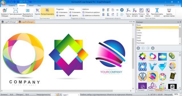 Logo Designer - программа для создания логотипов позволит создавать графику любой формы с помощью векторных инструментов рисования. Также может быть использована для создания визитных карточек, бланков, плакатов и т.д. Имеет встроенную библиотеку логотипов, символов и стилей (более 5000 символов и 200 шаблонов логотипов).