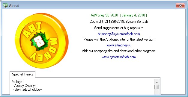 Скачать портативную программу ArtMoney 8.01 SE (10,74 МБ):